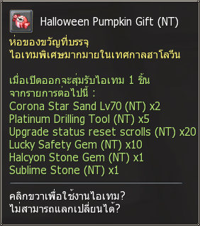ของรางวัลจากการแลก จะได้รับเป็น Halloween Pumpkin Gift(NT)